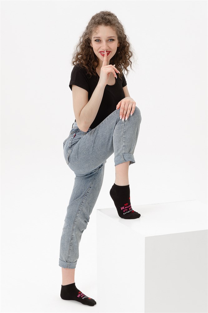 Короткие женские носки с оригинальной надписью. Отлично подойдут в качестве подарка на 8 марта и по любому поводу. В упаковке 1 пара