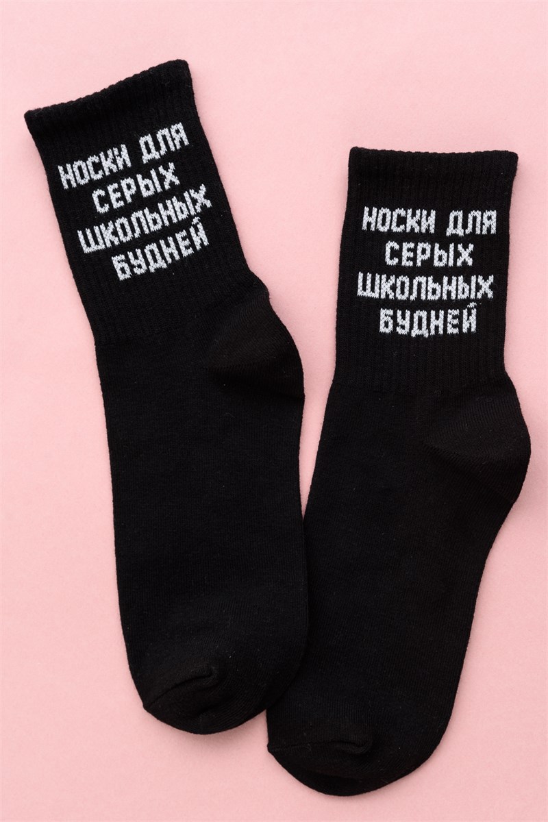 Комплект женских носков 3 пары. Широкая резинка. По верхней части носка надпись Носки для серых школьных будней