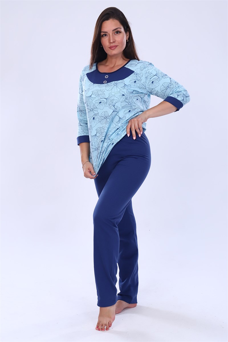 Теплая пижама с длинными брюками, кофта полуприлегающего силуэта с рукавом 3/4. Брюки из футера петля, кофта из футера с начесом