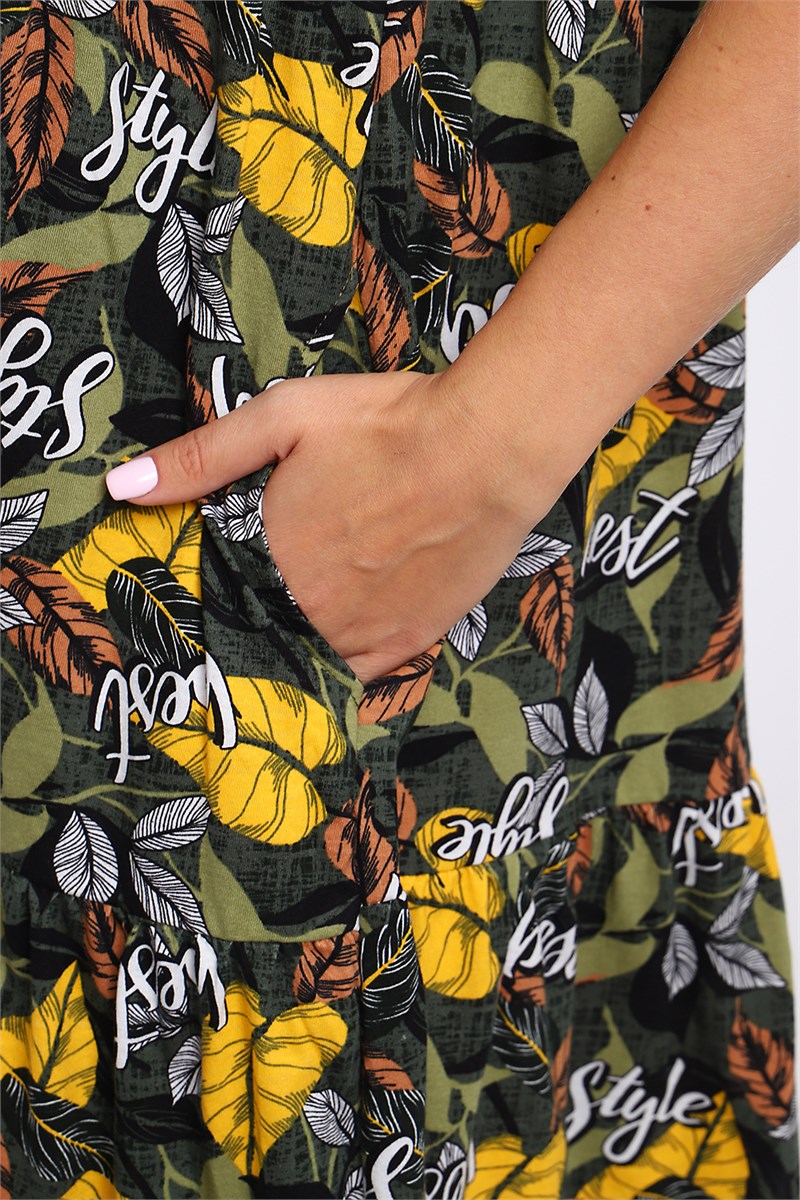 Свободное летнее платье с двухъярусной юбкой на сборке, короткими рукавами с отворотными манжетами и карманами в боковых швах. Необходимый элемент гардероба для легких образов.