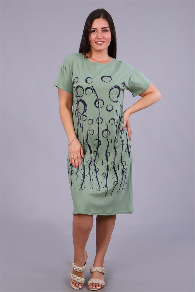 Платье женское с принтом из приятного к телу трикотажа. Модель полуприлегающего силуэта, круглая горловина, спущенное плечо, фигурная пройма, короткий слегка присборенный свободный рукав. Уютное, мягкое платьице необходимая вещь в гардеробе любой женщины, подойдёт для дома, отдыха и приятных прогулок.