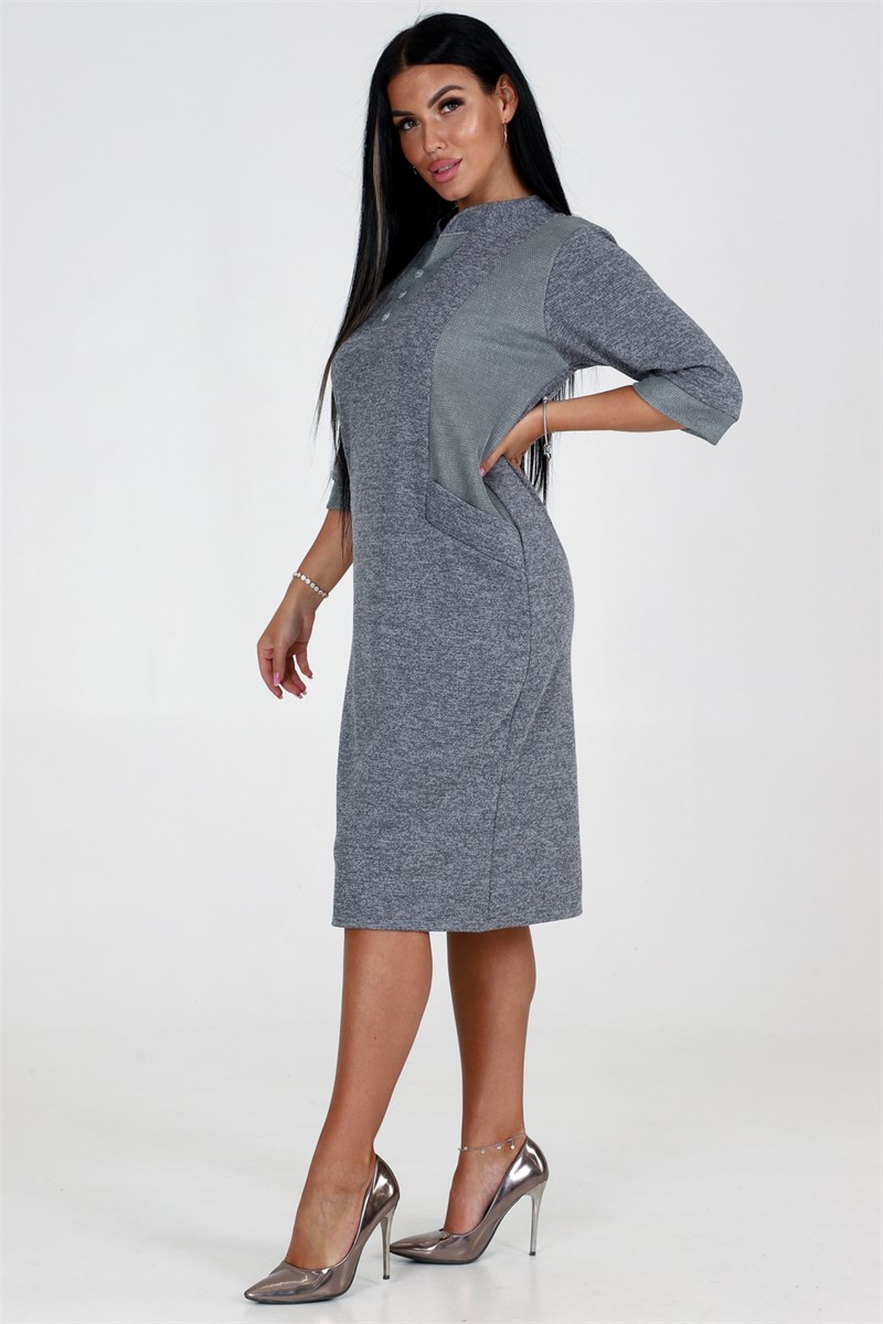 Уникальное платье прямого кроя ваш идеальный выбор для создания элегантного образа. Это комбинированное платье с декоративными пуговицами на планке и воротником стойка-мандарин. Рукав 3/4 на манжете добавляет особый шарм этому наряду.