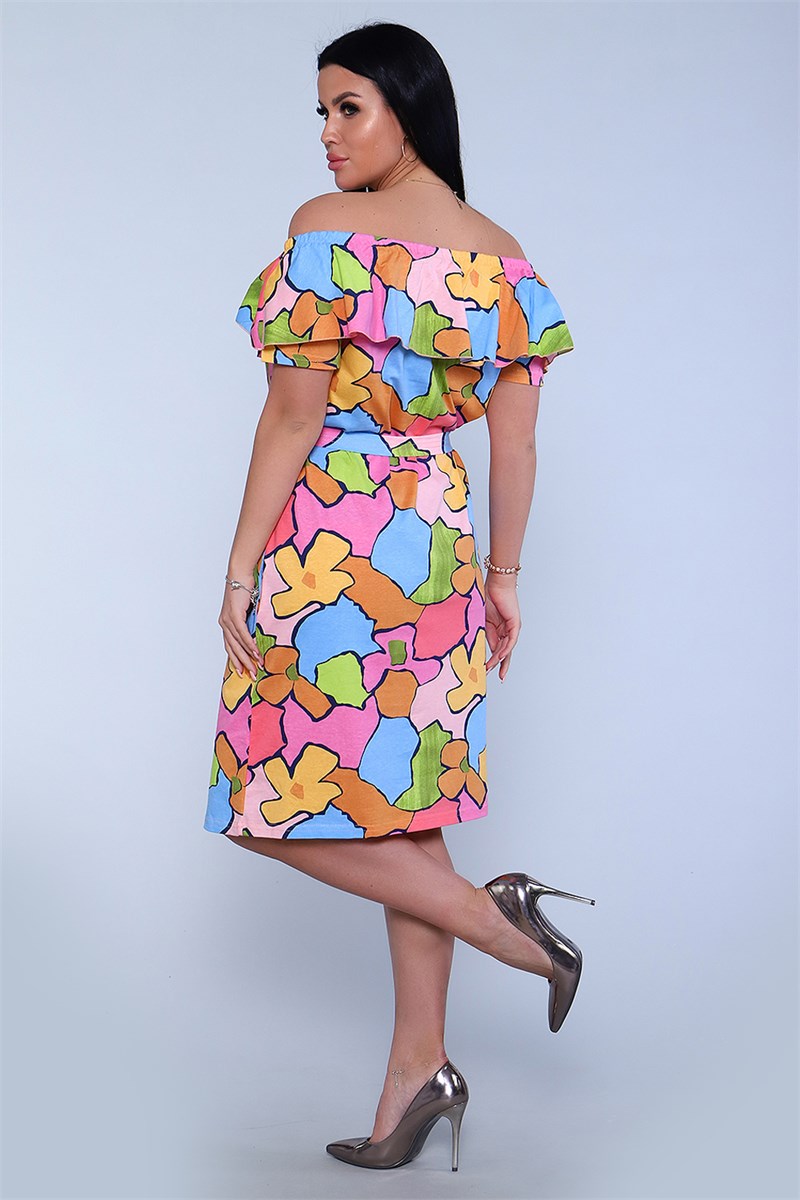 Женское платье-сарафан полуприлегающего силуэта с поясом и широкой рюшью на плечах. Выполнен в романтическом стиле из трикотажного полотна, 100% хлопок. Горловина собрана на резинку и отделана широкой оборкой. Короткий рукав, реглан. Длина пояса в 44 размере 155 см, в 62 размере 180 см. Широкий размерный ряд с 44 до 62 размера. Яркие весенне-летние расцветки с принтом по ткани в виде цветных камушек. Карманы в боковом шве, добавляют дополнительный комфорт при носке. Платье можно носить, как со спущенным с плеч верхом, так и с поднятым, либо на одно плечо. Прекрасно подходит беременным, так как пояс не фиксируется на изделии и может приталить платье на любом уровне. В этом нарядном и удобном платье, Вы будете себя чувствовать комфортно в любой обстановке: на прогулке, дома, в отпуске, на пляже, на даче и на любом празднике.