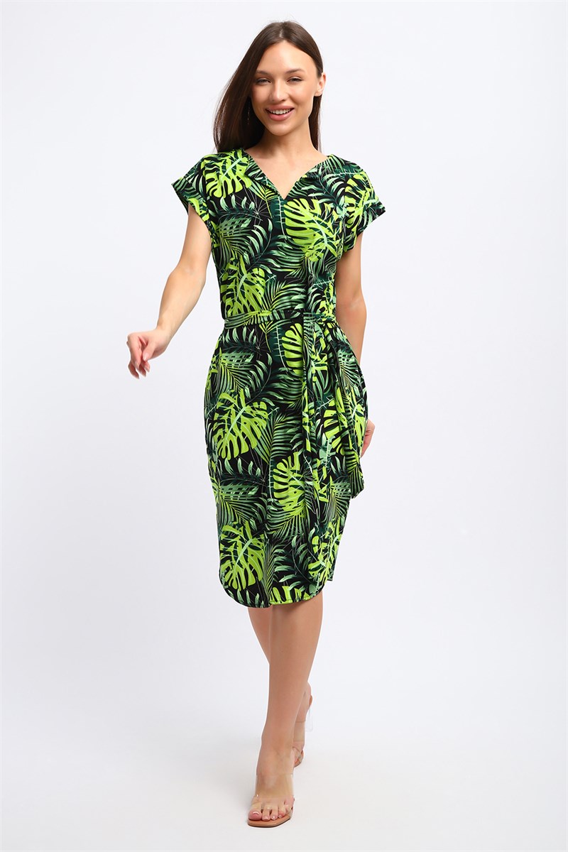 Платье-туника летнее выполнено из трикотажного полотна, кулирка 100% хлопок. Платье полуприлегающего силуэта умеренного объёма с коротким цельнокроеным рукавом. Спинка и полочка цельнокроеные, вырез горловины круглый спереди разрез. Срез горловины спинки и полочки обработан подкроенной обтачкой из основной ткани. Срез проймы обработан манжетой. Длина платья до линии колена, по боковым швам округленные разрезы. Платье имеет пояс. Большой размерный ряд поможет подобрать платье на любую фигуру, для стройных и для полных. Платье подчеркнёт достоинства и скроет недостатки фигуры, подарит комфорт и удобство в жаркий летний день, в отпуске, на пляже.