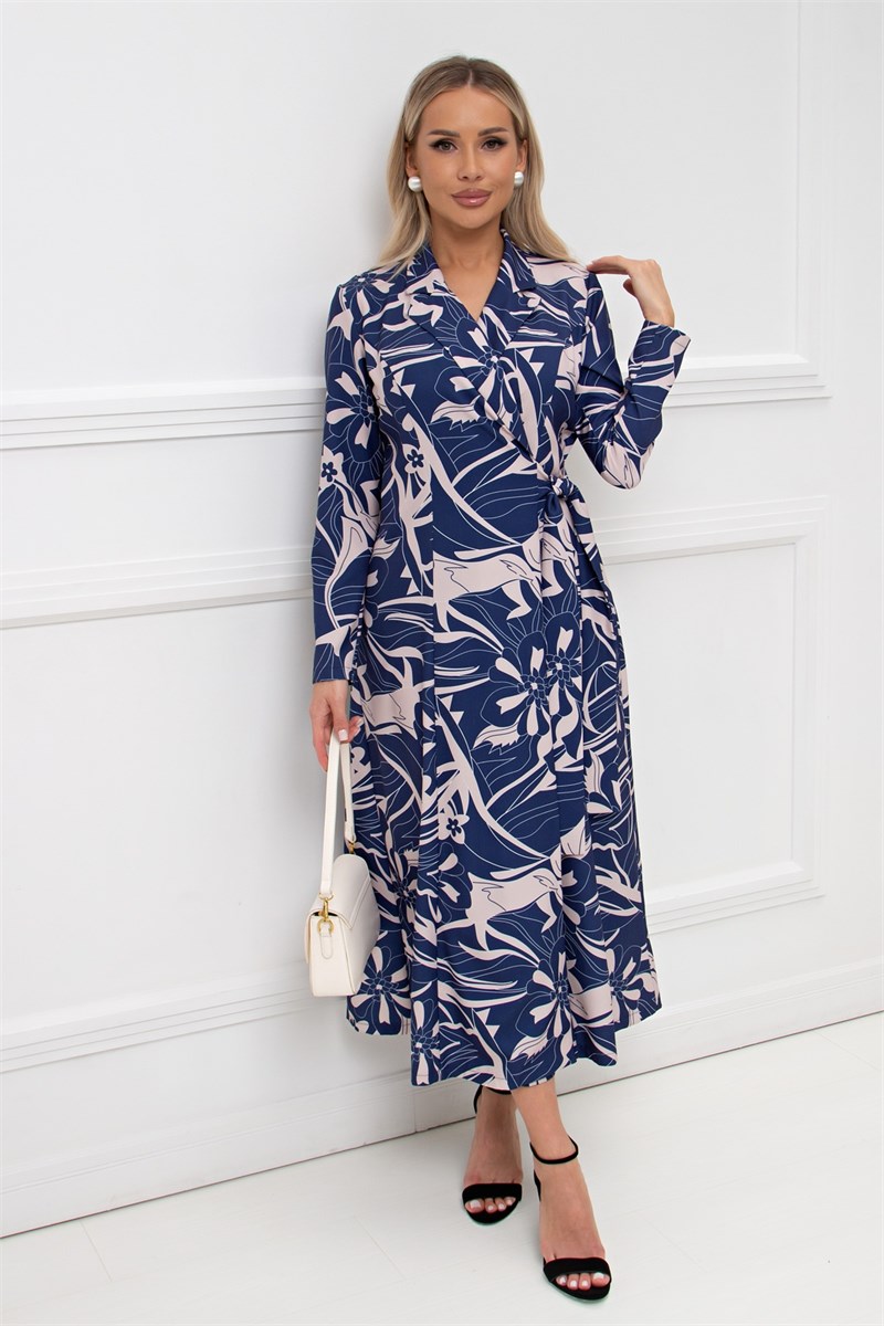 Комфортное платье на запахе, приталенного силуэта изготовлено из плательной ткани. Английский отложной воротник. Длинный втачной рукав. По линии талии пояс-завязка. В боковых швах функциональные карманы. Низ ровный, без разрезов. Рекомендуемая стирка при t не более 30°. Длина изделия: 125 см. Длина рукава: 58 см. Ткань: летняя плательная ткань. Рост фотомодели: 168 см Размер фотомодели: 42