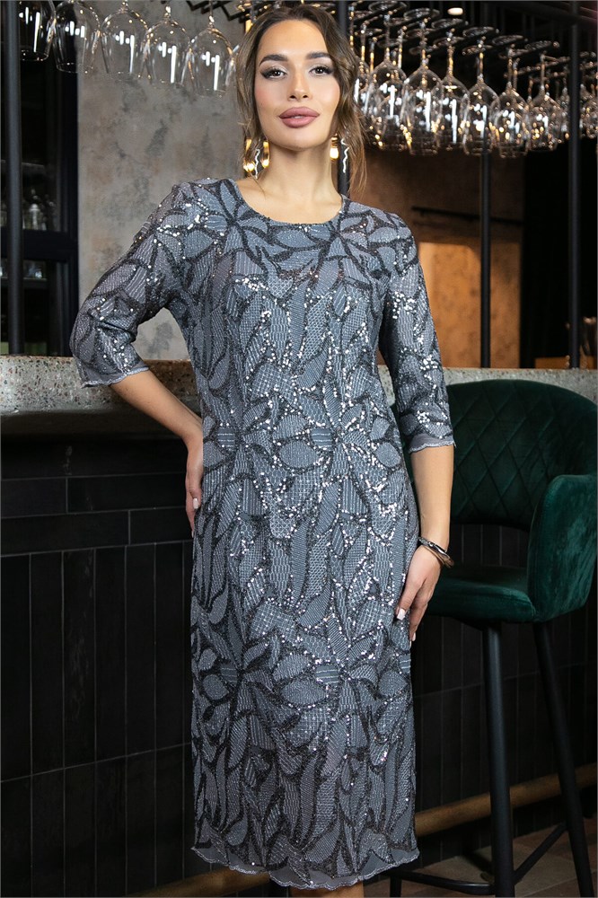 Уникальное платье расшитое пайетками - ваш идеальный выбор для праздников. Особенность этого наряда - узоры из пайеток, которые добавляют неповторимого сияния и блеска. Облегающий силуэт и длина миди подчеркнут ваши формы, делая вас сногсшибательной и привлекательной. Детали, такие как округлый вырез и легкие рукава 3/4 , добавляют изысканный вид. Хорошо стилизуется с туфлями-лодочками.
