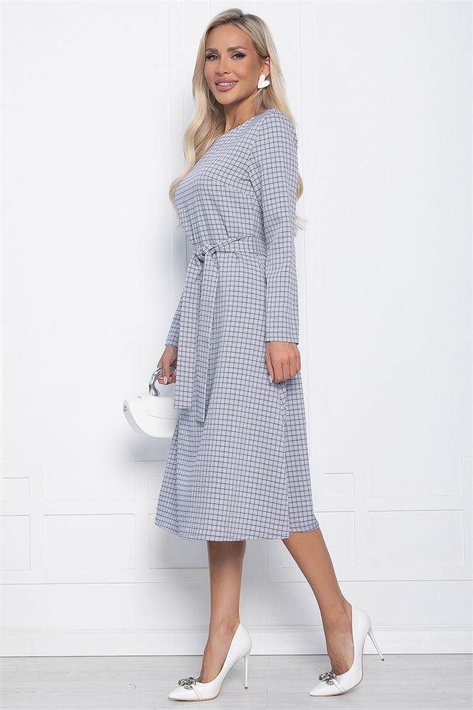 Базовое платье в клетку имеет элегантный дизайн - приталенный силуэт придает ему особый шарм. Оно отлично подчеркнет вашу женственность и создаст неповторимый образ. Пояс из основной ткани входит в комплект. Платье отрезное по талии.