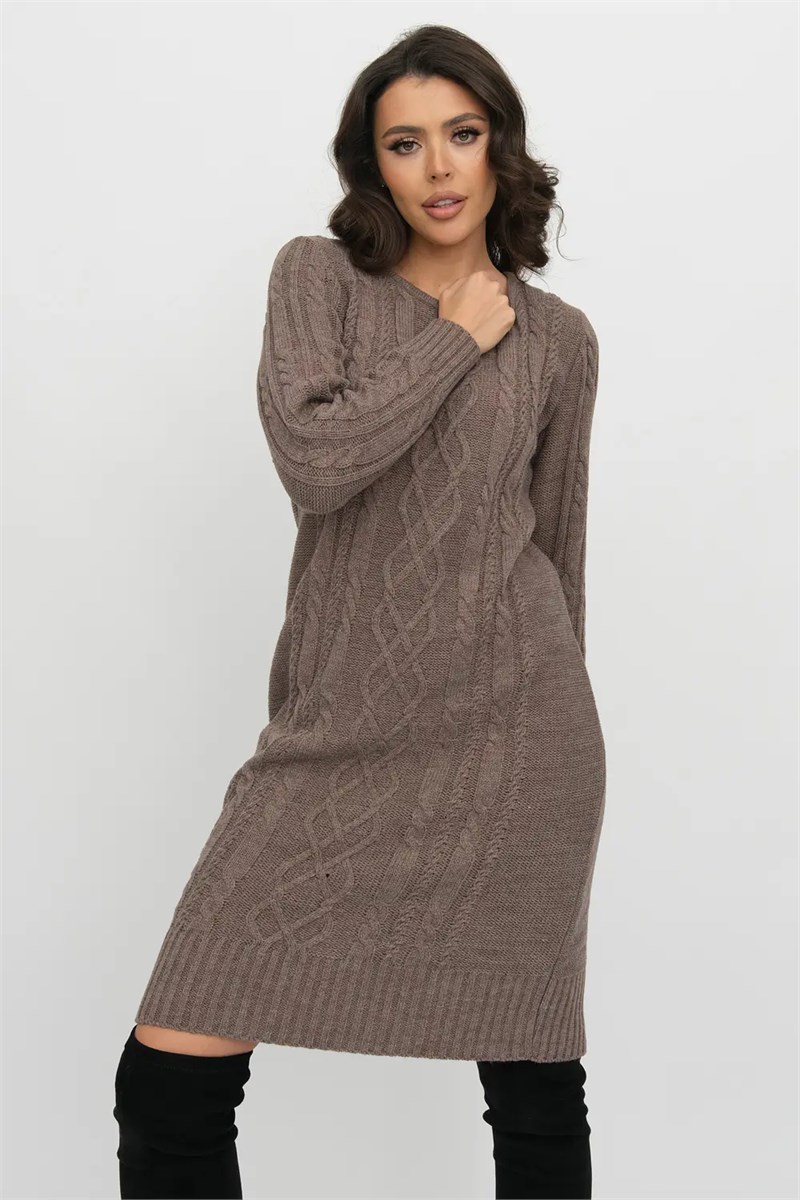 Вязаное платье женское полуприлегающего силуэта . Рукава втачные длинные. Горловина круглая, обработана бейкой.  Платье с фактурным узором  косами станет украшением вашего осеннего гардероба. Женское вязаное платье изготовлено из мягкой и приятной к телу турецкой пряжи с содержанием шерсти.и подходит для использования в зимний период.