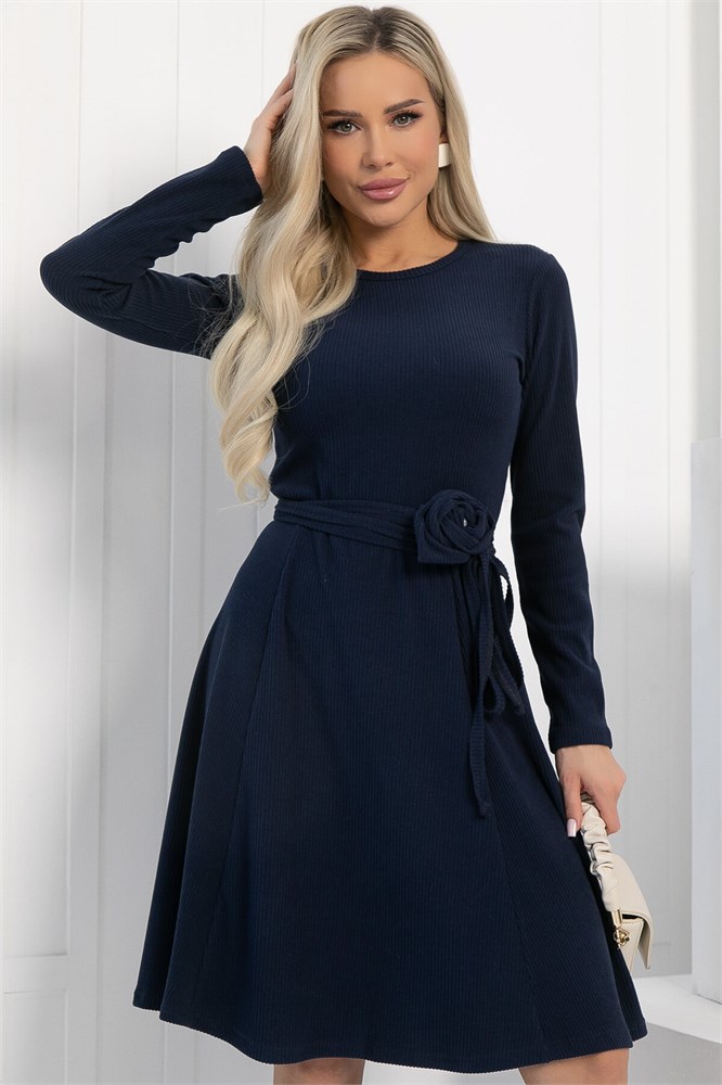 Романтичное платье приталенного силуэта подчеркивает фигуру, добавляя женственности. Выполнено из приятного трикотажа. Прямой рукав, юбка клиновидная расклешенная. Очень качественно сшито и не стесняет движений, прекрасно подчеркивает фигуру. Вы в нем будете смотреться романтично и нежно. В дополнение пояс, декорированный розой.