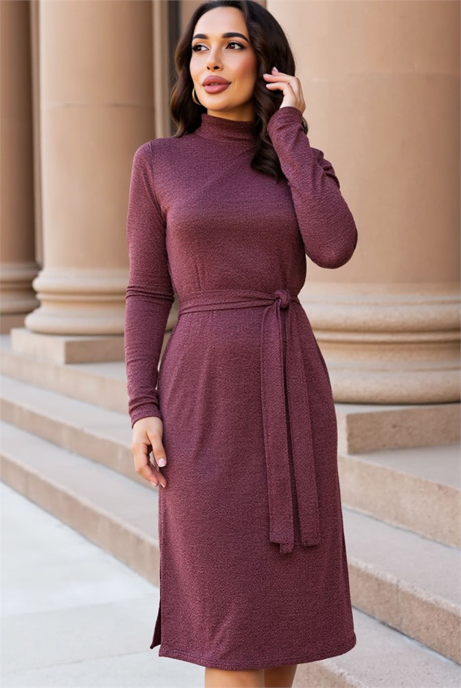 Базовое платье в бордовом цвете — универсальный элемент женского гардероба, способный подчеркнуть вашу женственность и создать неповторимый образ. Благодаря комфортной длине рукава и цельнокроеной стойке на горловине, оно удобно и стильно подходит для любого сезона. Разрезы по бокам придают образу нотки динамики и изящества, а пояс из основной ткани, который входит в комплект, дополнительно подчеркивает талию и создает стройный силуэт. Идеальный выбор для тех, кто ценит комфорт и стиль в повседневной жизни.