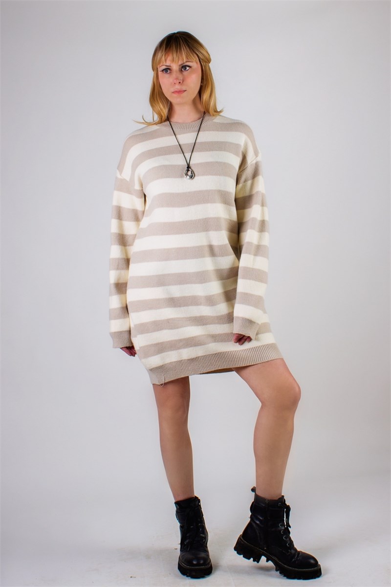 Платье свитер, вязаная туника Полоска арт.1991 - уютная и стильная модель, которая гармонично сочетает в себе элегантность платья и комфорт пуловера. Платье-свитер в полоску выполнена в корейском стиле: лаконичный силуэт прямого кроя с длиной до колена, что делает образ одновременно современным и женственным. Модель изготовлена из качественного современного акрила, обладающего мягкой и приятной на ощупь текстурой. Материал не вызывает зуда и раздражения, он легко пропускает воздух и сохраняет тепло, а по структуре напоминает благородную ангору: ткань мягко обволакивает тело, не колется и не вызывает никакого дискомфорта.