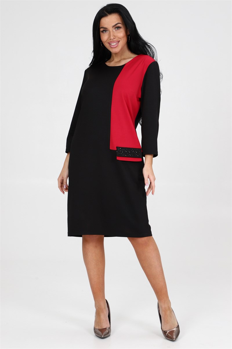 У нас представлено потрясающее женское платье прямого силуэта, которое обязательно привлечет внимание окружающих! Благодаря уникальному сочетанию двух расцветок, оно идеально подчеркнет вашу индивидуальность и стиль. Полочка этого платья дополнена яркой цветной вставкой, которая придает ему дополнительную изюминку. Декоративный клапан на полочке платья, украшенный элегантными стразами, выглядит роскошно и приковывает взгляды. Горловина округлая и удобная, позволяющая чувствовать себя комфортно в течение всего дня. Рукав платья три четверти, что делает его идеальным выбором для любого сезона. Наше платье доступно в размерном ряду от 50 по 60 размер, обеспечивая возможность подобрать идеально сидящий вариант для каждой женщины.Не упускай шанс быть в центре восхищенных взглядов.