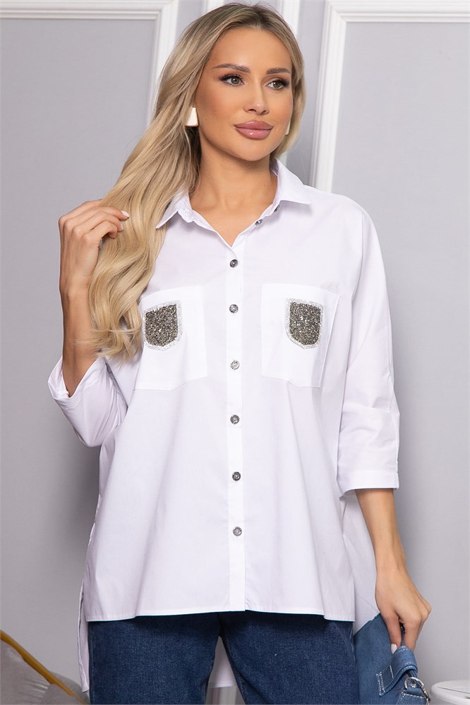 Стильная рубашка — базовая основа гардероба! Подходит как для офиса, так и для учёбы. Рукава длиной 3/4, два накладных кармана, длина рубашки сзади длиннее, чем спереди. Оверсайз-модель придает стильный и современный вид, при этом прекрасно скрывая все недостатки фигуры. Это великолепный выбор для тех, кто предпочитает оригинальность и стиль в своем аутфите. Прекрасно сочетается с различными низами и аксессуарами.