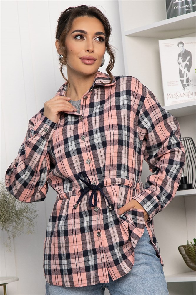 Рубашка в клетку станет стильным акцентом в вашем гардеробе, позволяя экспериментировать с разными образами. Её можно носить как самостоятельный элемент или использовать в многослойных ансамблях. По бокам есть разрезы. Рубашка с воротником-стойкой и аккуратной застежкой на пуговицы выглядит современно и элегантно. Спущенное плечо добавляет расслабленности, а кулиска на талии подчеркивает фигуру. Создайте свой уникальный стиль с нашей новой клетчатой рубашкой!