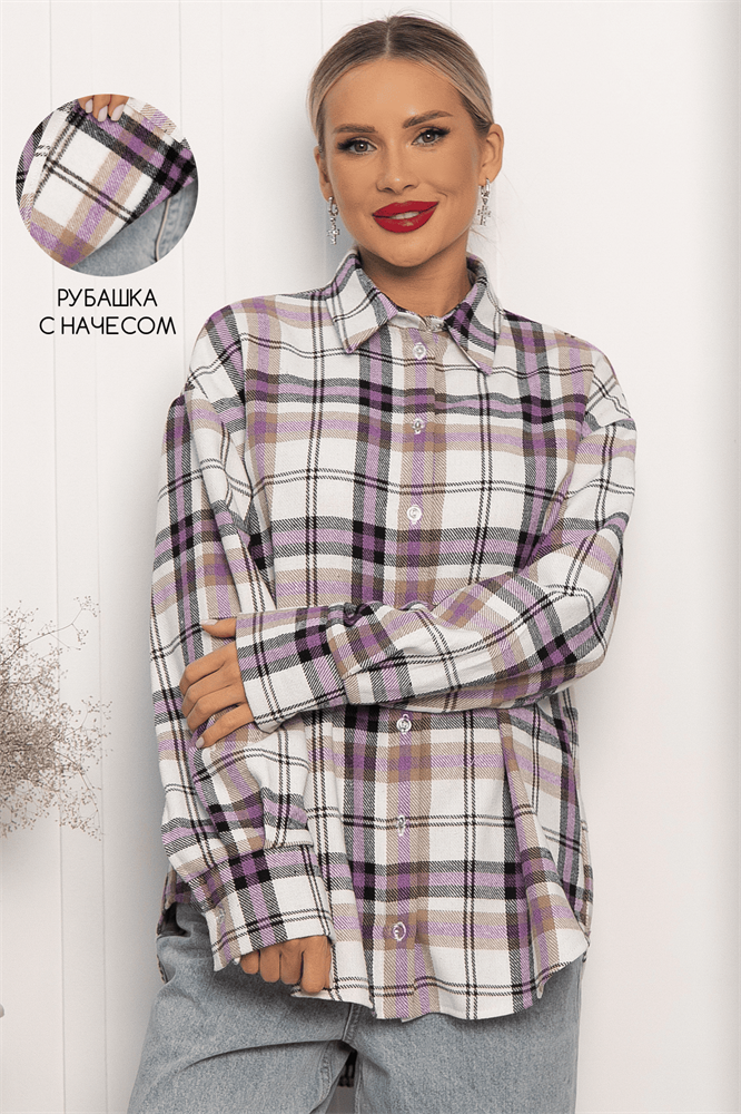 Рубашка оверсайз Дарика (бело-сиреневая) Б14253-30М