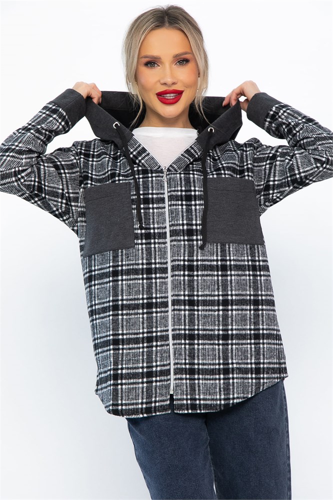 Рубашка из плотной мягкой ткани в модную клетку на молнии, с длинным рукавом, накладными карманами и капюшоном. Прекрасно подходит для повседневного многослойного образа. Сочетая в себе комфорт и уют, она создает новый тренд в одежде и свежий альтернативный вариант для гардероба. Идеально подходит к джинсам, брюкам и шортам.