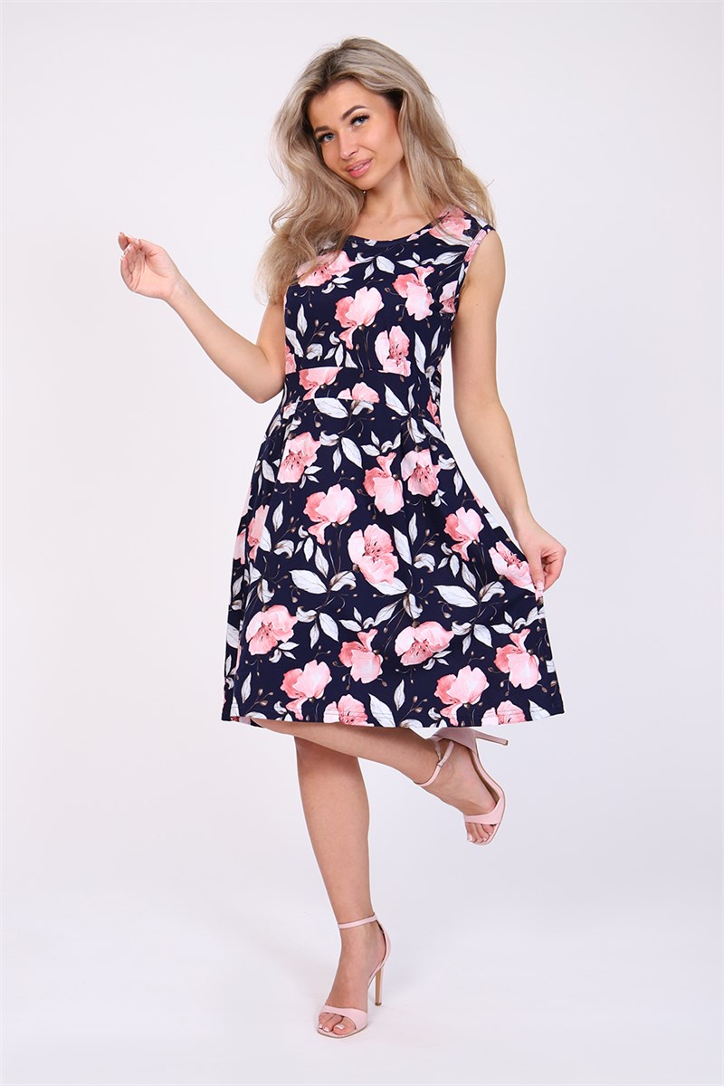 Летний женский сарафан отрезной по талии. Талия подчеркнута отрезным поясом. Яркая расцветка.