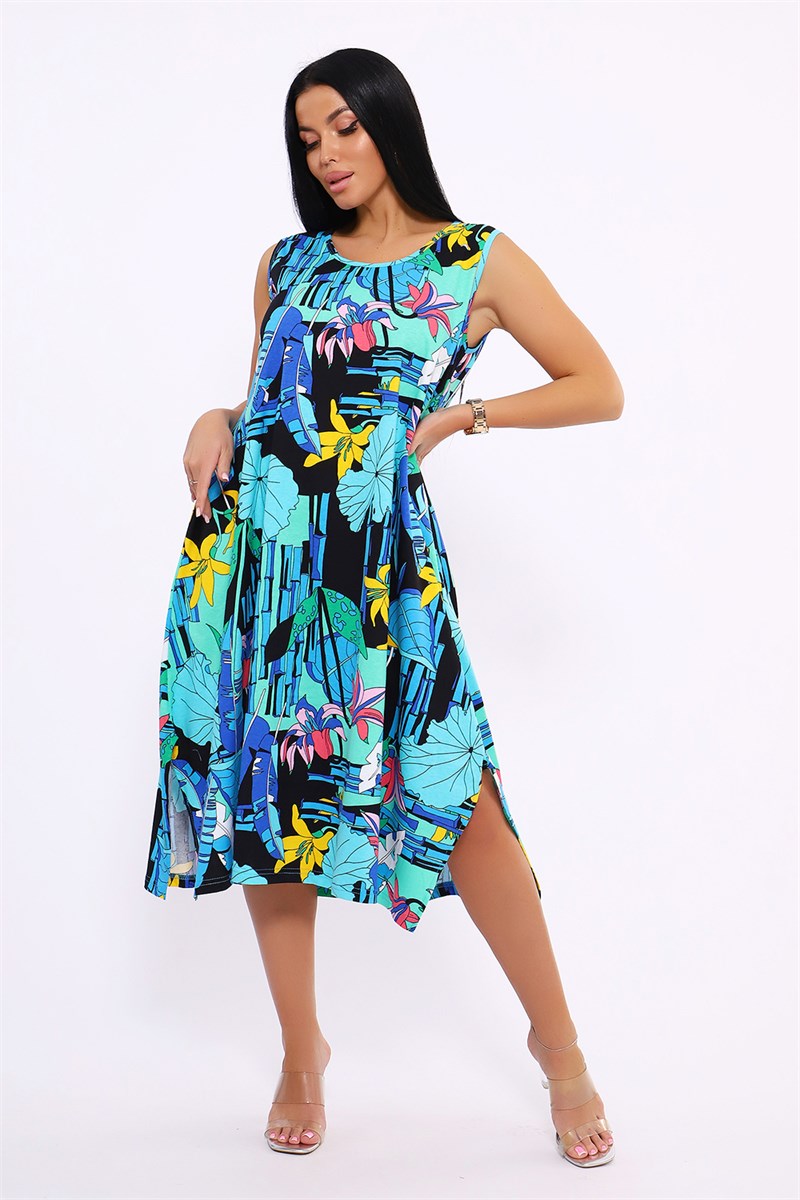 Повседневный длинный сарафан выполнен из трикотажного полотна, комфортный и мягкий на ощупь. Платье - сарафан на широких лямках подходит под разные типы фигур, трапециевидный А-силуэт и карманы в боковом шве будет удобен для полных и для беременных девушек. Подол сарафана свободного кроя. Сарафан идеален для повседневной носки, пляжного отдыха или вечеринки на природе.