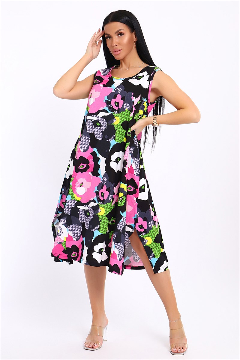 Повседневный длинный сарафан выполнен из трикотажного полотна, комфортный и мягкий на ощупь. Платье - сарафан на широких лямках подходит под разные типы фигур, трапециевидный А-силуэт и карманы в боковом шве будет удобен для полных и для беременных девушек. Подол сарафана свободного кроя. Сарафан идеален для повседневной носки, пляжного отдыха или вечеринки на природе.