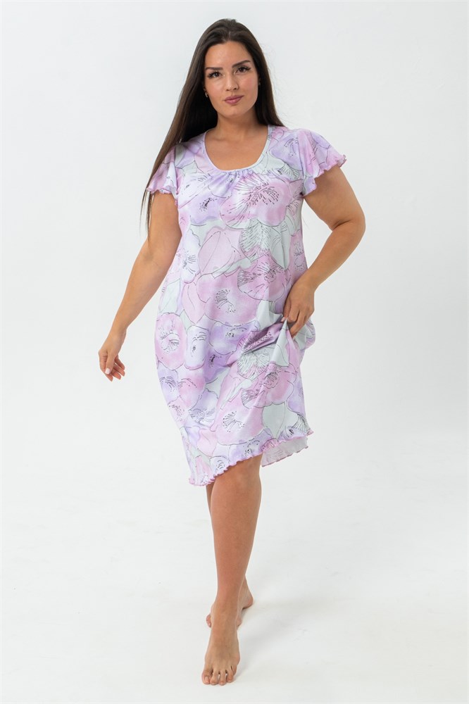 Женская ночная сорочка - это домашняя одежда предназначенная специально для сна. Комфортная длина, свободный крой, короткий рукав в виде крыла прикрывает плечо и создаёт ощущение уюта и защищённости. Широкий размерный ряд от 46 до 68 размера. Изделие из хлопка (100%) приятно к телу, гигроскопично и экологично. Ночные сорочки больших размеров с коротким рукавом будут очень удобны и комфорты не только для девочек, подростков и женщин, но и для бабушек. Красивая летняя рубашка - это ночное белье, которое должно присутствовать в гардеробе у каждой представительницы женского пола, а кулирное трикотажное полотно обеспечит высокое качество изделия и его долговечность. Такие летние рубашки свободного кроя пользуются особой популярностью не только у женщин, они просто не заменимы и для девушки, и для бабушки. У сорочки приятная расцветка в двух колористиках: нежные розово-сиреневые тона и приятный голубой, такая сорочка не оставит равнодушным никого. Стильная свободная универсальная ночнушка будет отлично сочетаться с домашним халатом и отлично носиться в любой сезон. Это отличный подарок подруге, маме, бабушке, жене, девушке или сестре.