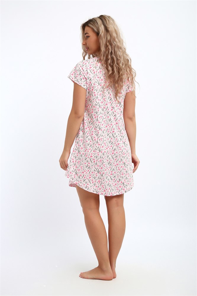 Сорочка маечного фасона с коротким рукавом и закругленным подолом. Подходит для сна и отдыха.