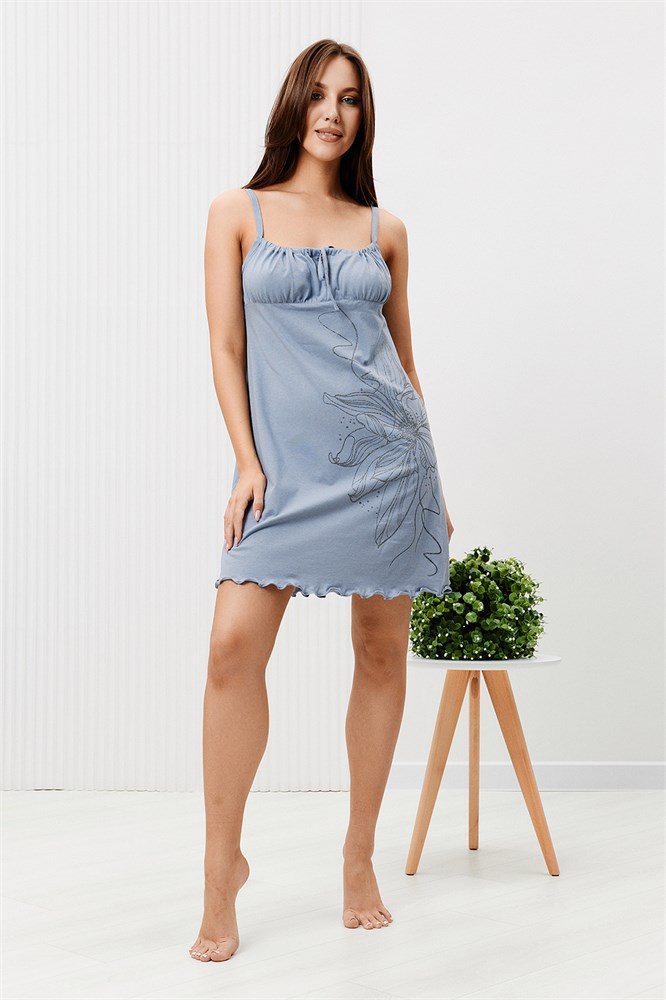 Сорочка женская из кулирного полотна - приталенный силуэт, на бретелях, по переду кокетка со складочками, низ изделия обработан краевым швом.