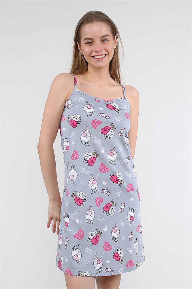 Сорочка женская на тонких бретелях, полуприлегающего силуэта, длиной до колен.