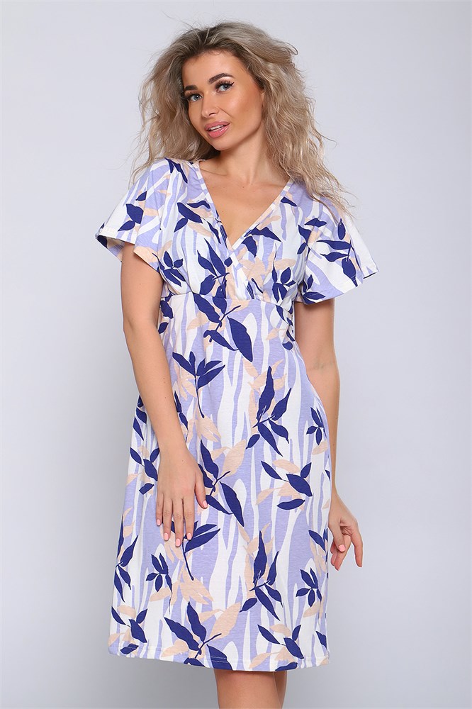 Сорочка полуприлегающего силуэта, отрезной лиф на запах со складками и короткими рукавами - крылышками. Комфорта для повседневной носки и сна.