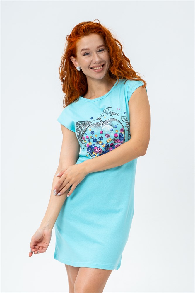 Ночная сорочка простого фасона, украшенная красивой, нежной, полноцветной печатью, поэтому ягоды кажутся натуральными. Очень комфортный крой, не стесняет движения. Горловина - лодочка. Рукав - максимально спущенная пройма