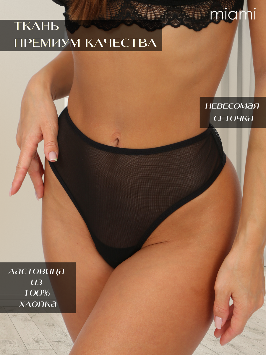 МодельСтринги прозрачные с высокой посадкой чёрные