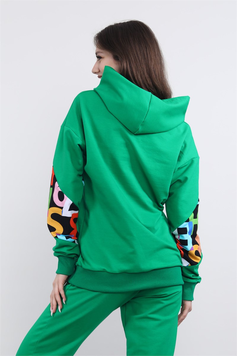 Толстовка с длинным рукавом в стиле оверсайз. Данная модель выполнена из трикотажного полотна футер с лайкрой. Горловина, манжеты по рукавам и низ отделаны трикотажным эластичным полотном кашкорсе. На изделии присутствуют вставки из цифровой печати. Отлична модель для приятного отдыха и прогулок.