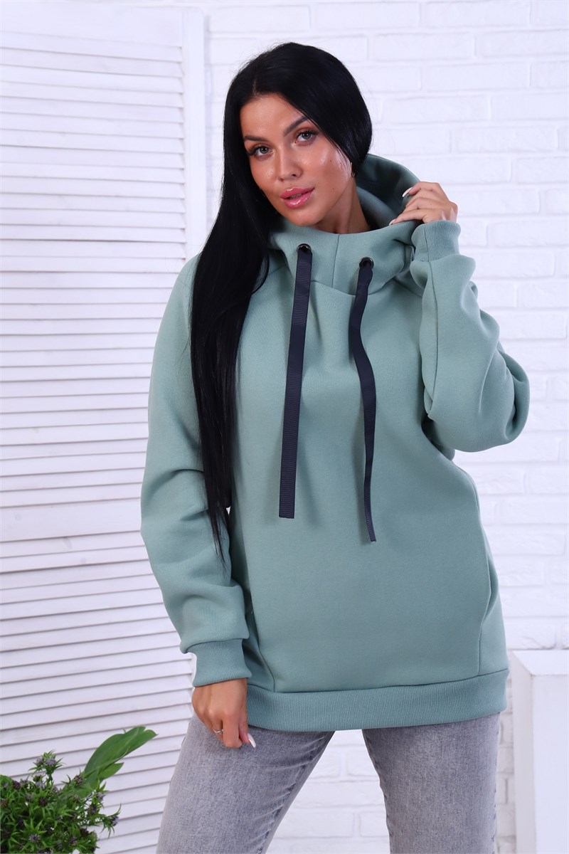 Толстовка женская: рукав реглан с манжетами, капюшон с люверсами и с отделочной лентой, 2 внутренних кармана, низ изделия - пояс из кашкорсе