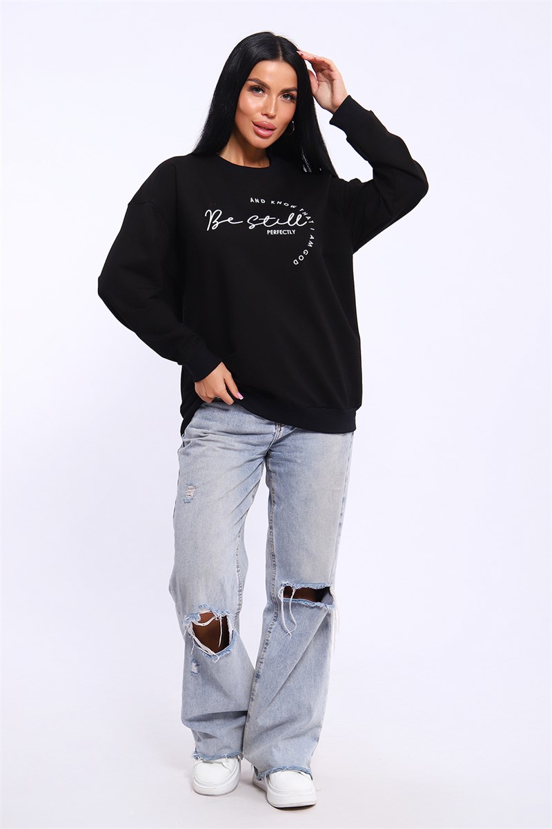 Толстовка из мягкого футера свободного кроя со спущенной линией плеча. Данная модель прекрасно скрывает все лишнее, что хочется скрыть. Горловина, манжеты и пояс из эластичного кашкорсе, на полочке небольшой принт.