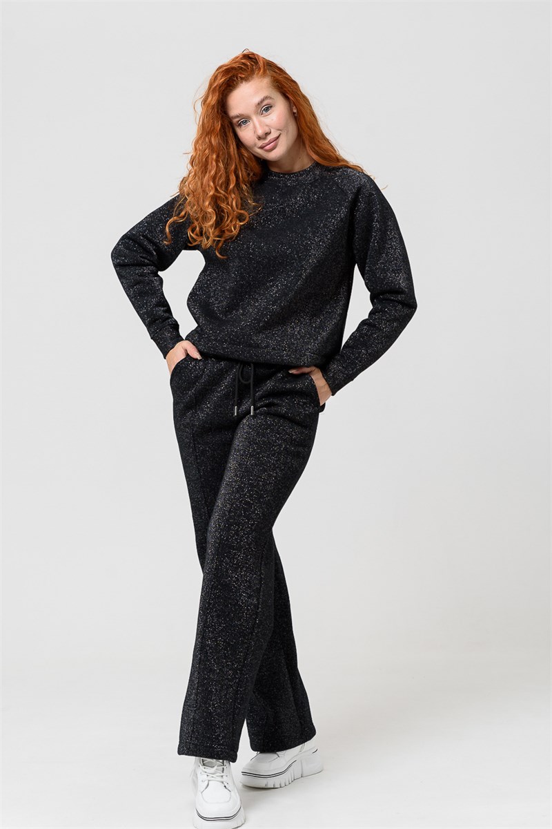 Толстовка прямая, укороченная, с округлой горловиной. Рукав реглан, длинный. Горловина и манжеты рукавов выполнены из эластичного полотна.