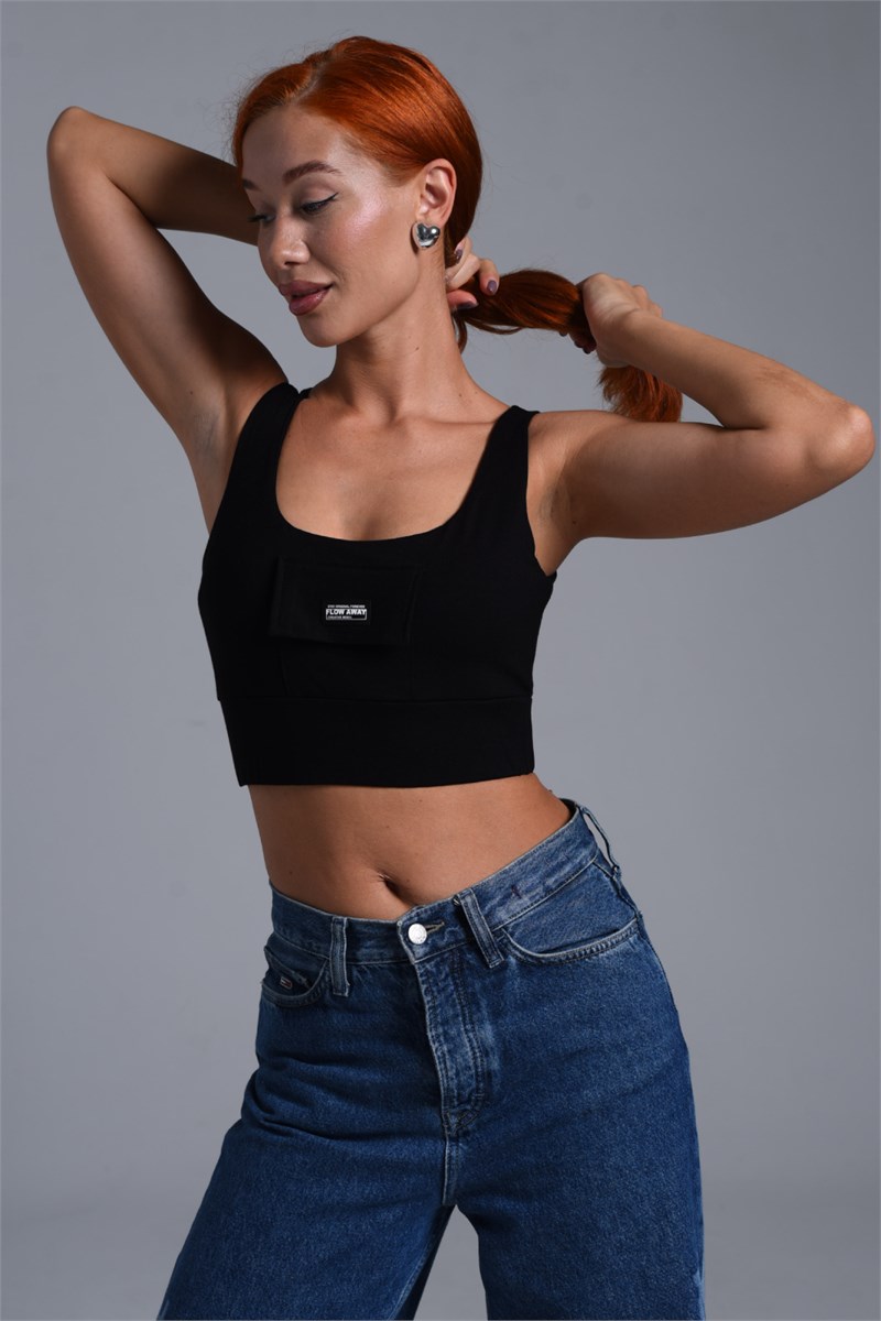 Топ спортивный выполнен из мягкой приятной к телу ткани в мелкий рубчик. Дополнен карманом спереди. Отлично сочетается со спортивными брюками, шортами, юбками.