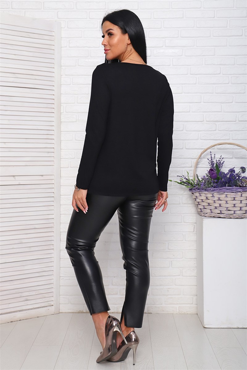 Модель свободного силуэта длиной до линии бёдер, рукав втачной длинный. На переднюю часть нанесён оригинальный и стильный принт, комбинированный с вертикальной россыпью из страз. Туника изготавливается в трёх расцветках, прекрасно сочетается с любой одеждой.