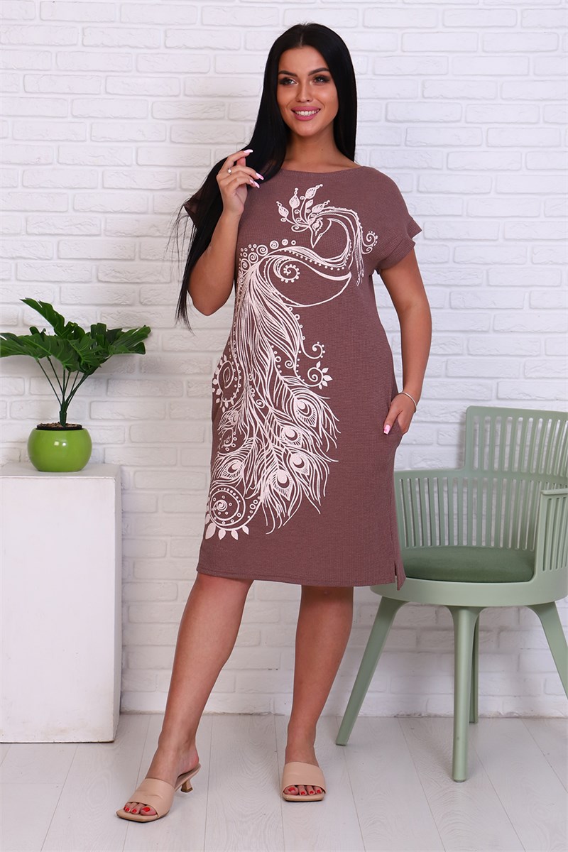 Туника женская с нежным принтом в виде жар-птицы, из трикотажного полотна СОТЫ. Модель полуприталенного силуэта, горловина в виде лодочки обработана обтачкой, спущенная пройма на широком манжете, в боковых швах удобные карманы. Низ спинки удлинён, по бокам небольшие разрезы. Трикотаж СОТЫ имеет оригинальный рисунок, образованный переплетением волокон, внешне напоминает пчелиные соты. Полотно мягкое, эластичное и прочное, легко стирается, практически не мнётся, не деформируется.