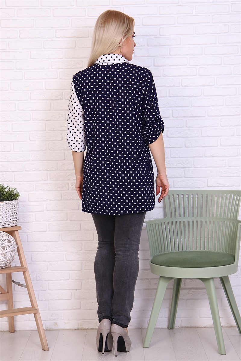Женская туника рубашечного кроя из легкой ткани. Сочетание двух цветов гороха придает ей загадочность и элегантность.