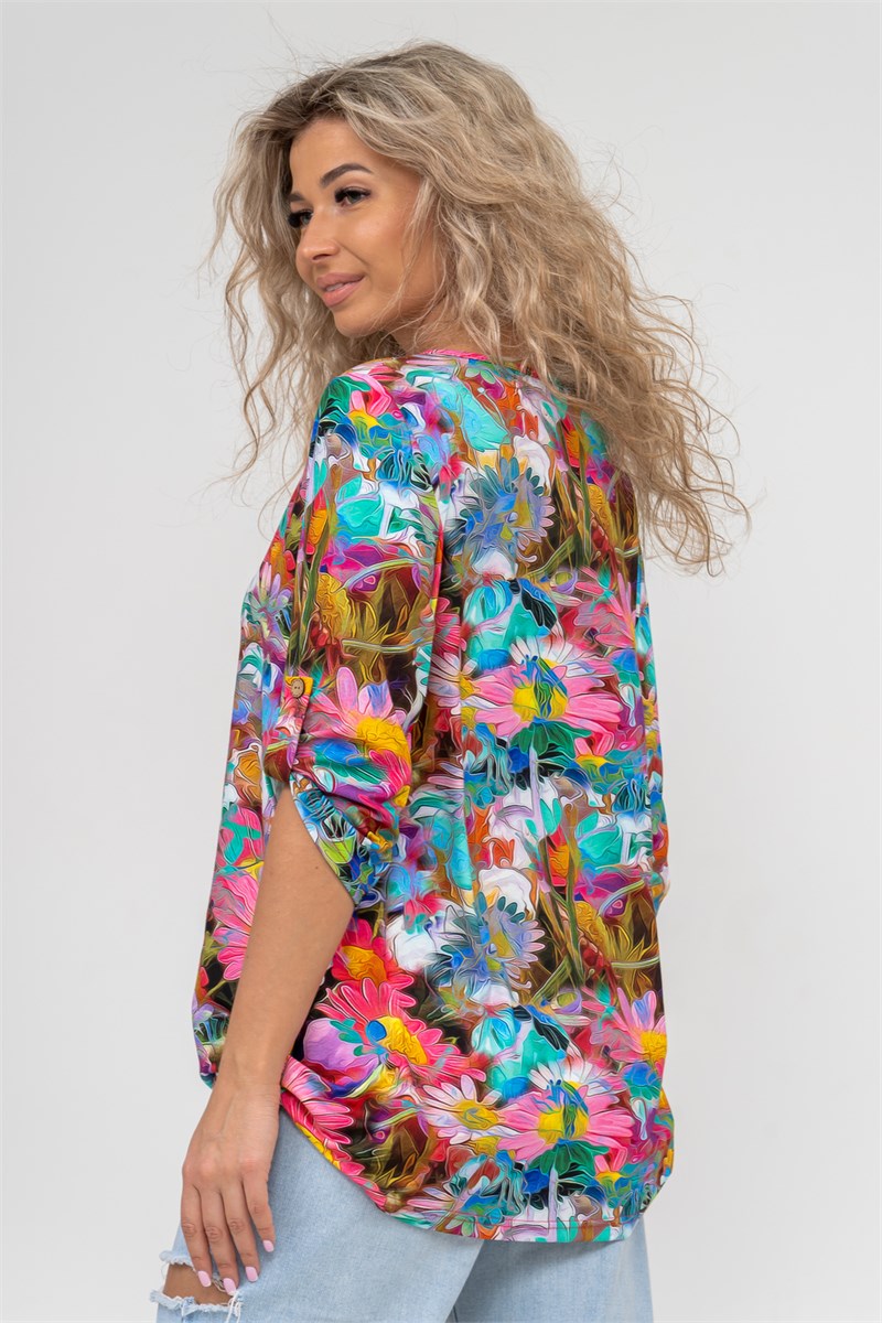 Женская туника свободного силуэта в стиле oversize выполнена из струящегося нежного вискозного полотна с ярким  рисунком. Этот стиль подходит для любой женщины, ведь он может скрыть все недостатки фигуры и подчеркнуть её достоинства. На материале выполнена печать диджитал с чёткой, яркой и чистой цветопередачей. То есть, рисунок печатается специальным оборудованием сразу на полотне без промежуточных носителей. Такие принты не боятся частых стирок, утюжек и не выгорают на солнце. Округлая горловина с треугольным вырезом, паты на рукавах и по низу изделия делают тунику удобной и привлекательной. Большие размеры подчеркнут ваши достоинства и скроют все недостатки фигуры, благодаря своему идеальному крою. Туника женская с  рукавом 3/4 не сковывает движения. Одежда из материала такого плана прослужит вам долгое время, не теряя свой цвет и форму. Тунику летнюю можно взять с собой в роддом, в поездку, на отдых в санаторий или будет  идеальным вариантом для похода на работу, корпоратив, фотосессию. А также будет отличным подарком для мамы, бабушки, сестры, подруги и себя любимой. А подарить такой сюрприз можно на любой праздник, день рождения или юбилей, новый год или 8 марта. Туника удлиненная женская будет хорошо смотреться как на невысоких, так и на высоких. Современная туника - это почти неотъемлемая часть гардероба любой женщины, которая сделает Вас неотразимой в любой ситуации.