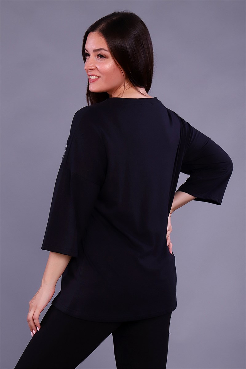 Туника изготовлена из натурального хлопка с оригинальным принтом, выполненным в технике объёмного рисунка. Модель свободного кроя, рукав длиной 3/4 обработан вкруговую вподгибку, как и низ изделия, Горловина втачная из основной ткани.