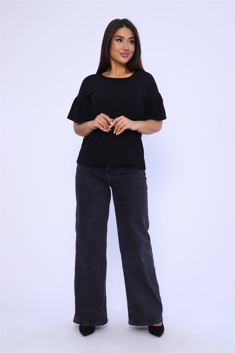 Женская элегантная туника прямого силуэта. Блузка имеет несколько цветов - 2 из них базовые черный и белый. Рукава воланового типа, чуть выше локтя, горловина округлая, снизу разрезы по бокам. Выполнена из ткани сингапур, которая отвечает за комфорт и легкость при носке. Туника на каждый день - на работу, на праздник, для прогулок.