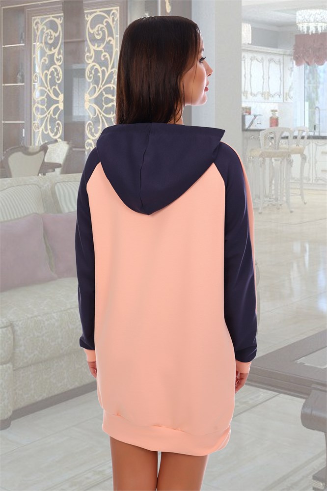 Туника из футера с печатью и капюшоном, рукав-реглан со вставкой