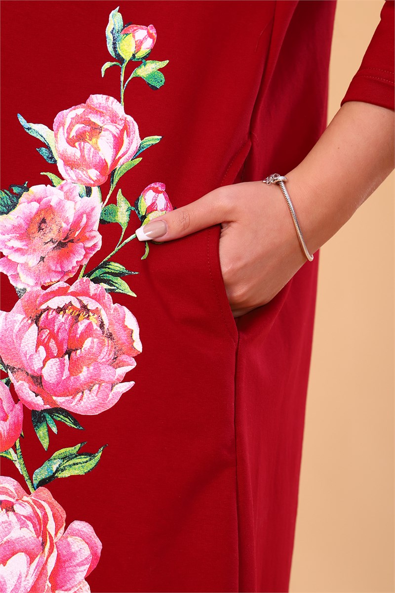 Стильная туника из футера, свободного кроя с большим принтом, рукава 3/4, кокетка фигурная, боковые карманы