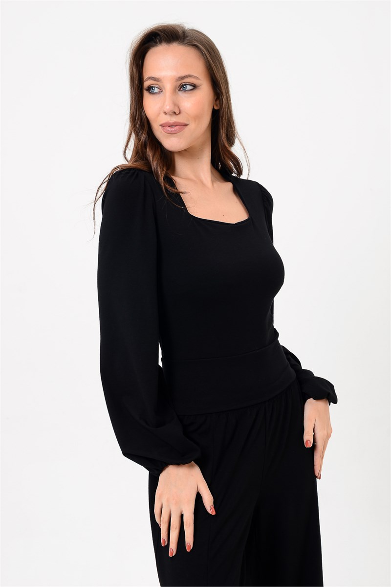 Элегантная женская блузка с длинными рукавами выглядит роскошно, ее можно носить как нарядную, праздничную, офисную. Выполнена из приятной на ощупь дышащей ткани, не просвечивает. Особенностью блузки являются объёмные рукава с резинкой по низу. Благодаря удачному крою, эта модель подходит для высоких и невысоких женщин.