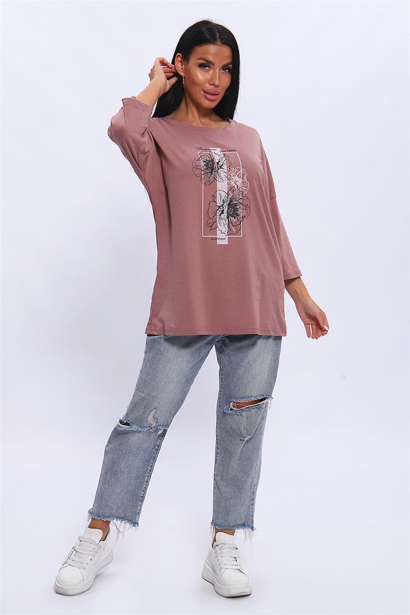 Туника свободного кроя из мягкого, натурального хлопка подарит ощущение комфорта и уюта. Принт пионы с использованием глиттера и техники объёмной печати украшает модель, придавая ей изысканный вид. Обработка деталей вкруговую с закрепкой, рукав длиной 3/4, горловина втачная из основной ткани. Большие размеры!