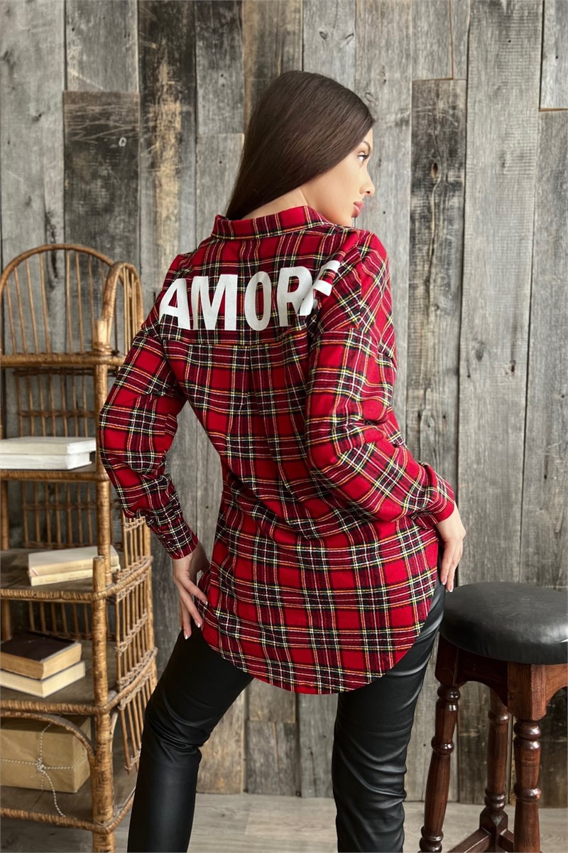 Женская туника-рубашка на пуговицах, с отложным воротником, свободная, с удлиненной спинкой и фигурной линией низа. Рукав удлиненный, на манжете.
