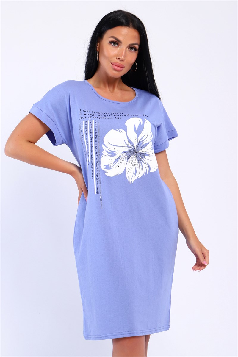 Туника женская с нежным принтом из мягкого хлопкового трикотажа. Модель слегка приталенного силуэта, круглая горловина обработана бейкой, спущенная пройма на манжете. Стильная, комфортная, приятная к телу туника незаменимая вещь в женском гардеробе для дома и отдыха.