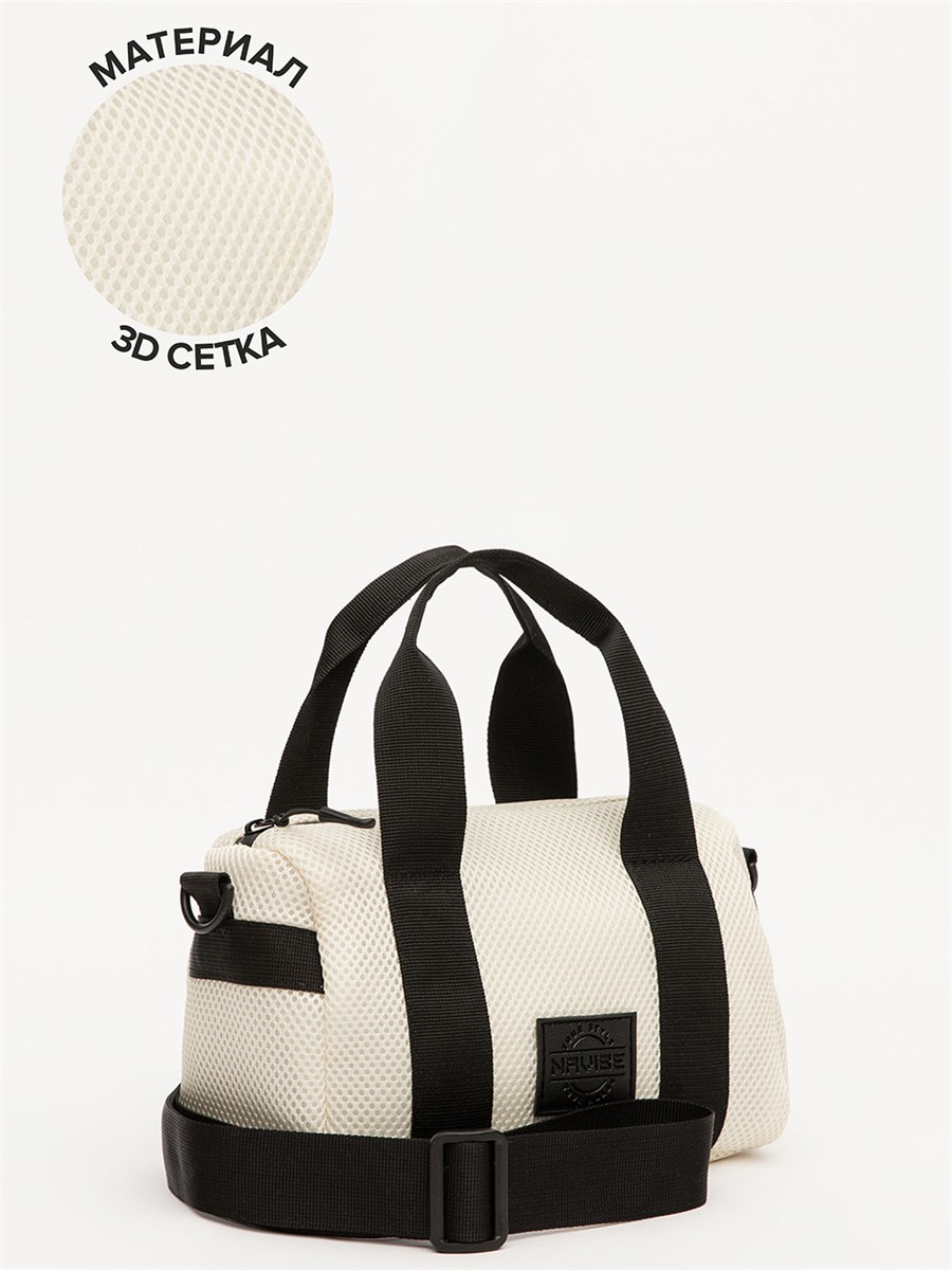 Трендовая форма «бочонка» с короткими ручками и съёмным регулируемым ремнём из рельефной стропы сочетает стиль и практичность.
