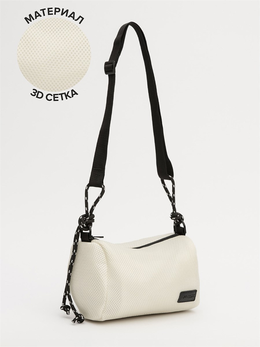 Её лаконичная форма бочонка из 3D-сетки выглядит современно и невесомо. Длинный регулируемый ремень с декоративными узлами добавляет образу лёгкую небрежность, сохраняя функциональность.