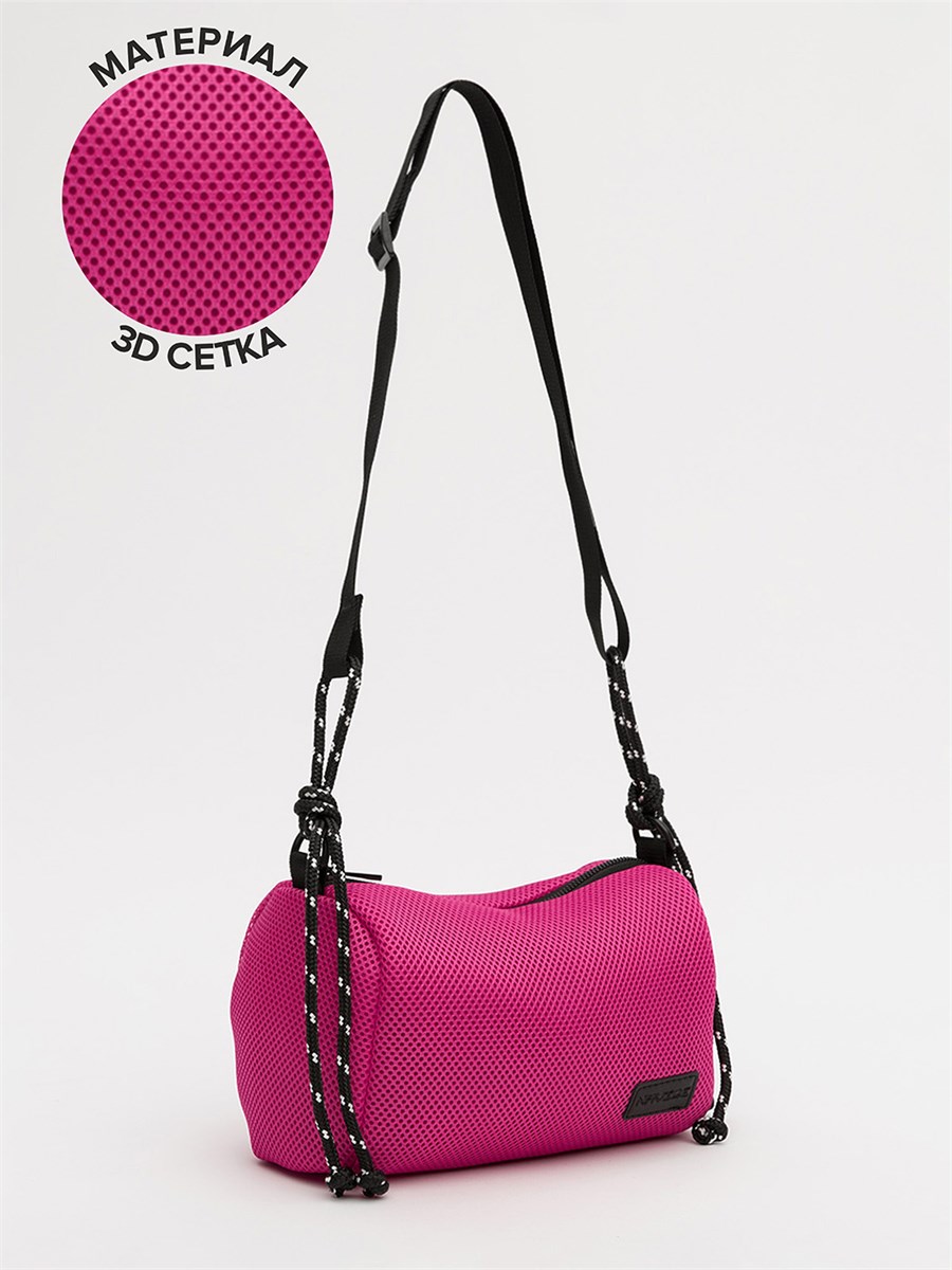 Её лаконичная форма бочонка из 3D-сетки выглядит современно и невесомо. Длинный регулируемый ремень с декоративными узлами добавляет образу лёгкую небрежность, сохраняя функциональность.